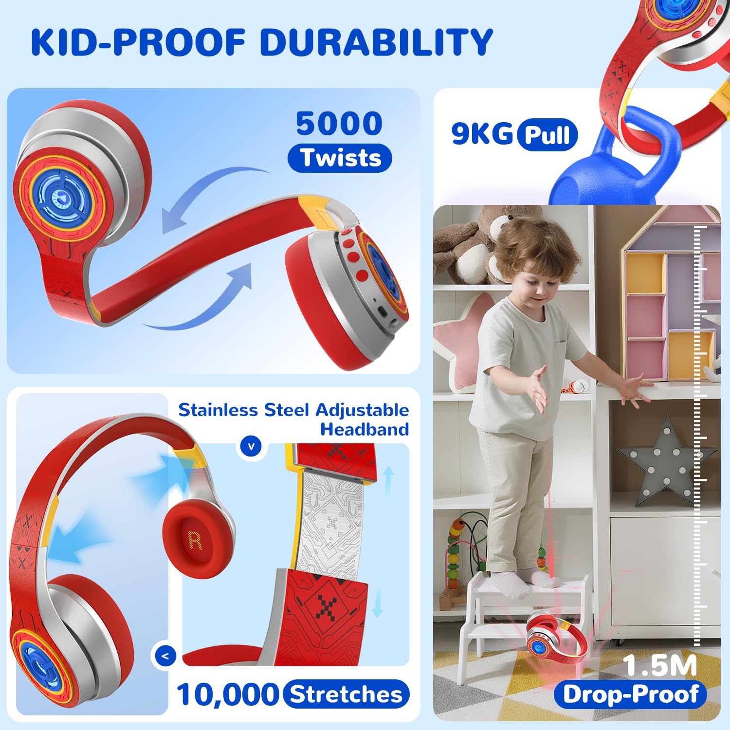 - 304 Stainless Steel Arms & Thickened ABS Headband