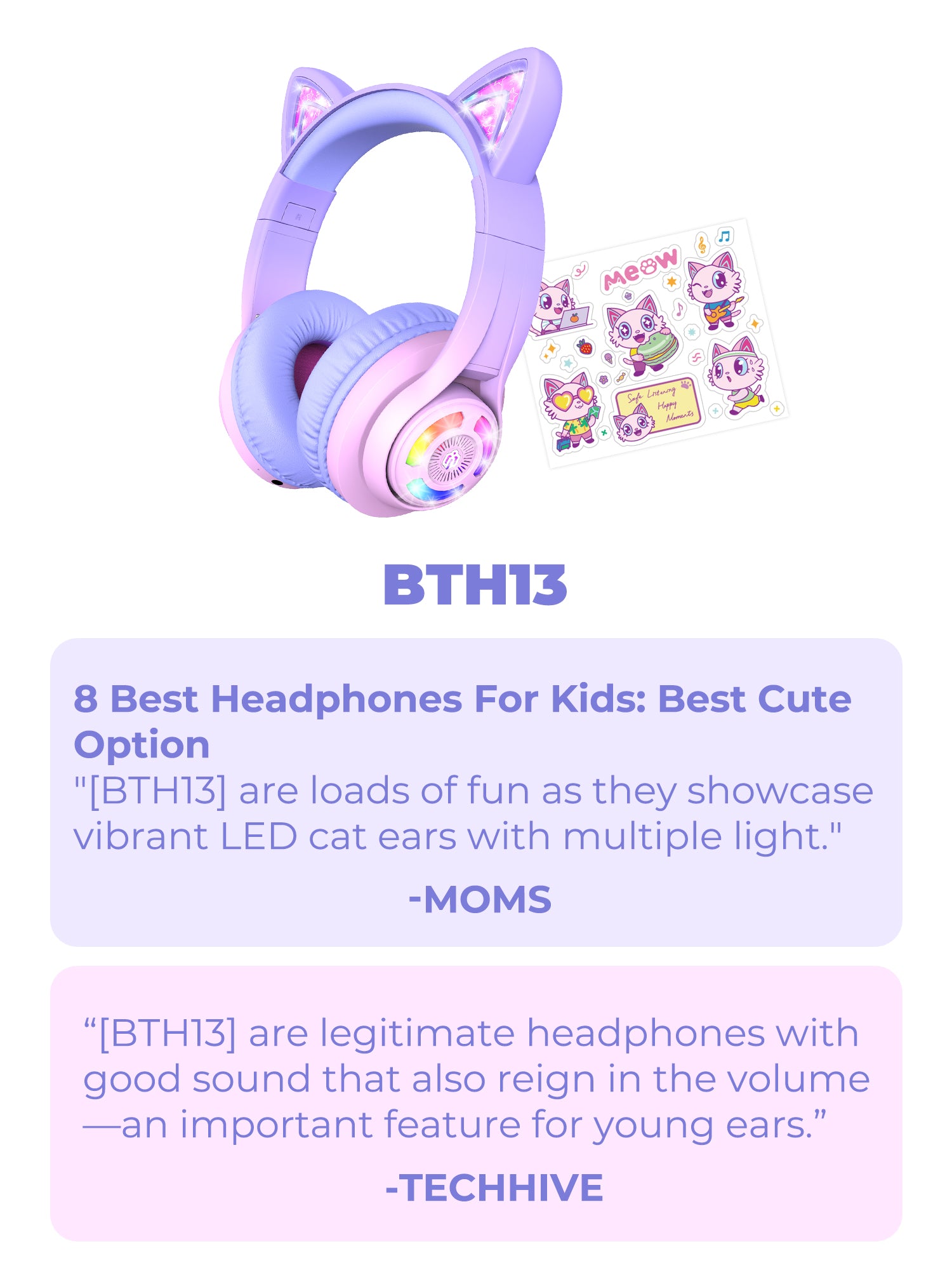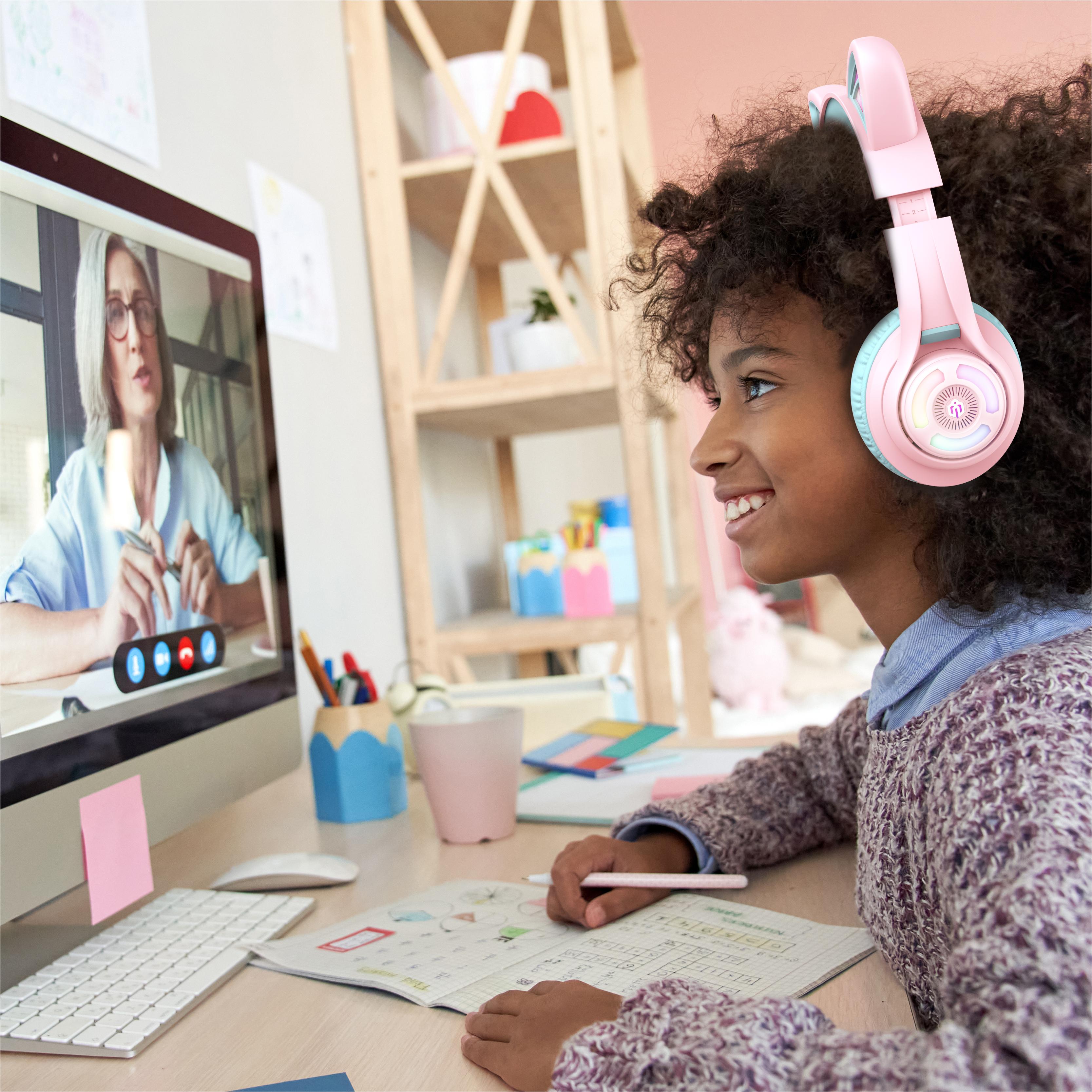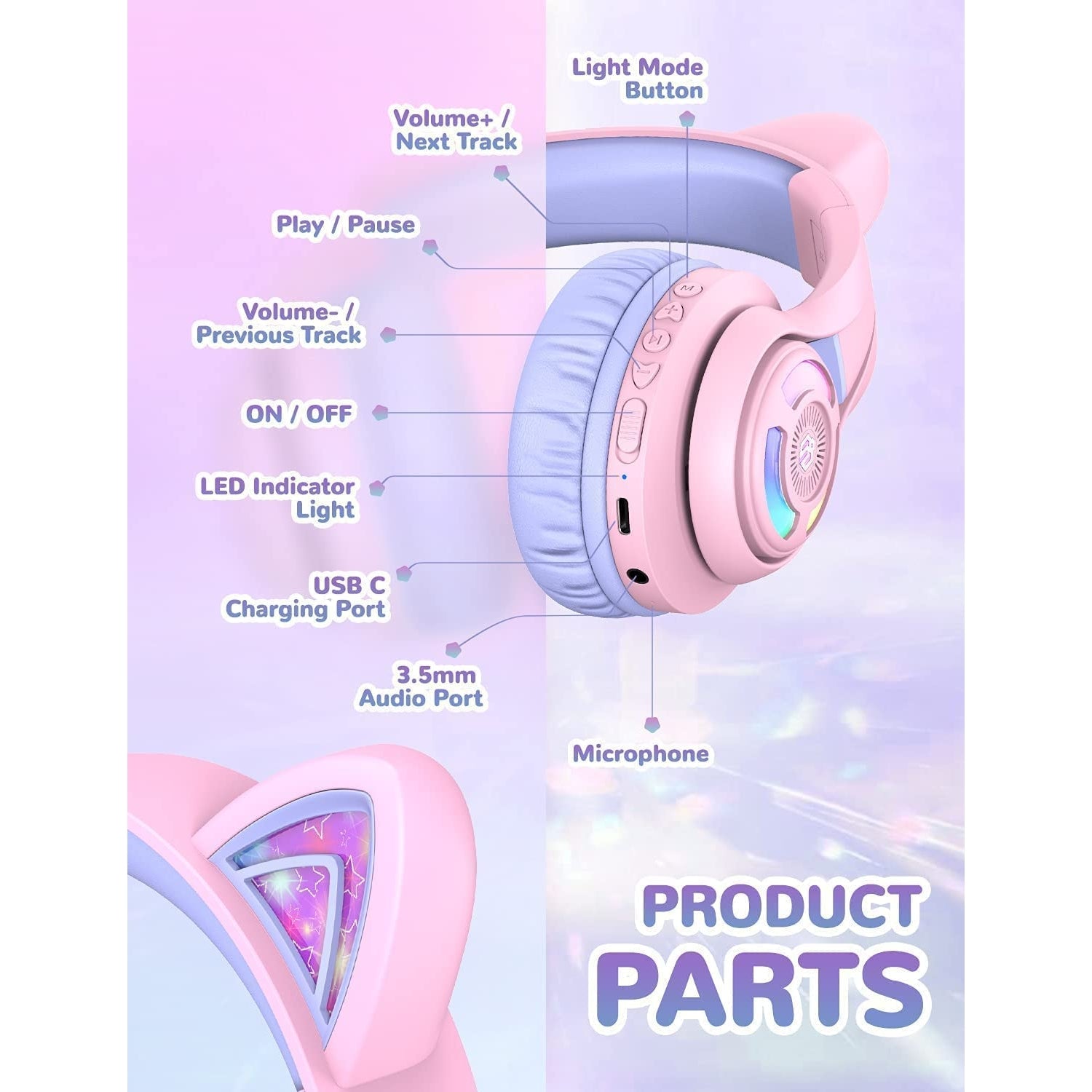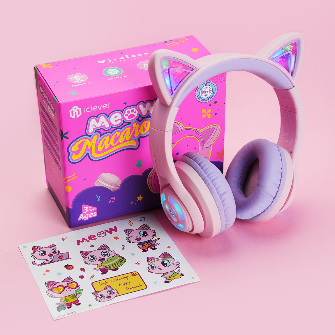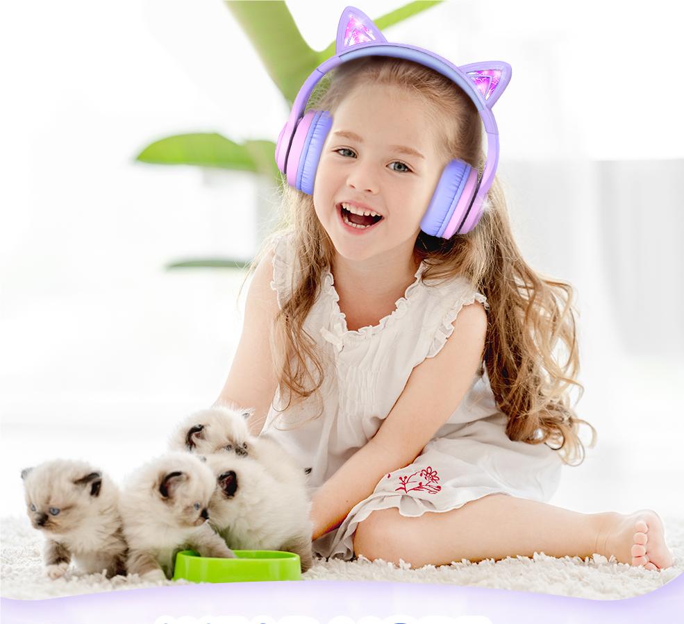 It's the evolution of kids headphones--great sound quality and a cute, fun, kid-friendly design. Your little ones will love the iClever cat ear headphones, whose RGB LED lights are controlled by one independent button. When pressed in Bluetooth mode, it will turn off the lights to extend use time.