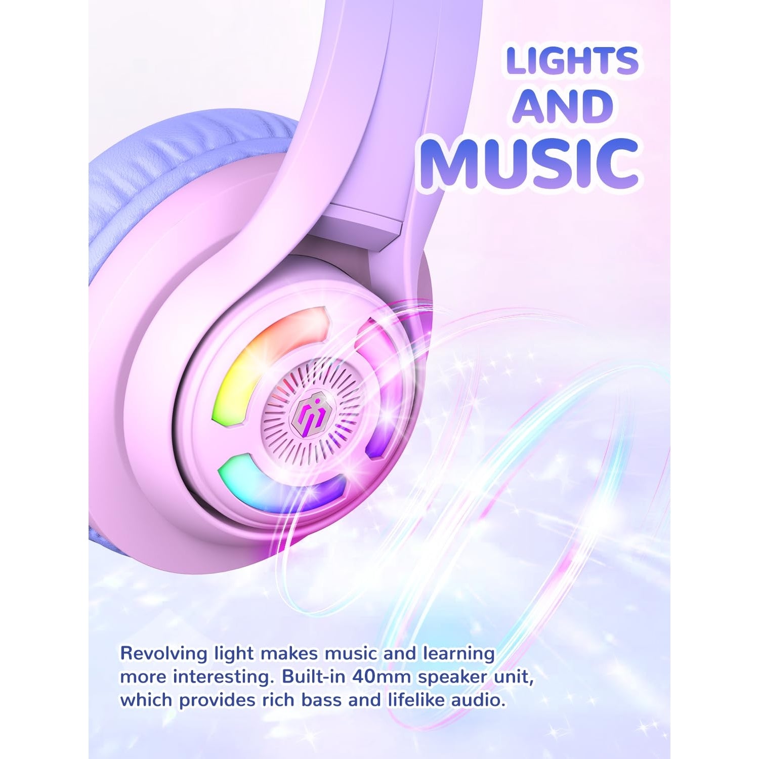 These iClever kids wireless headphones feature a flashing LED that you can turn on or off, for a fun combo of lights, music and color.