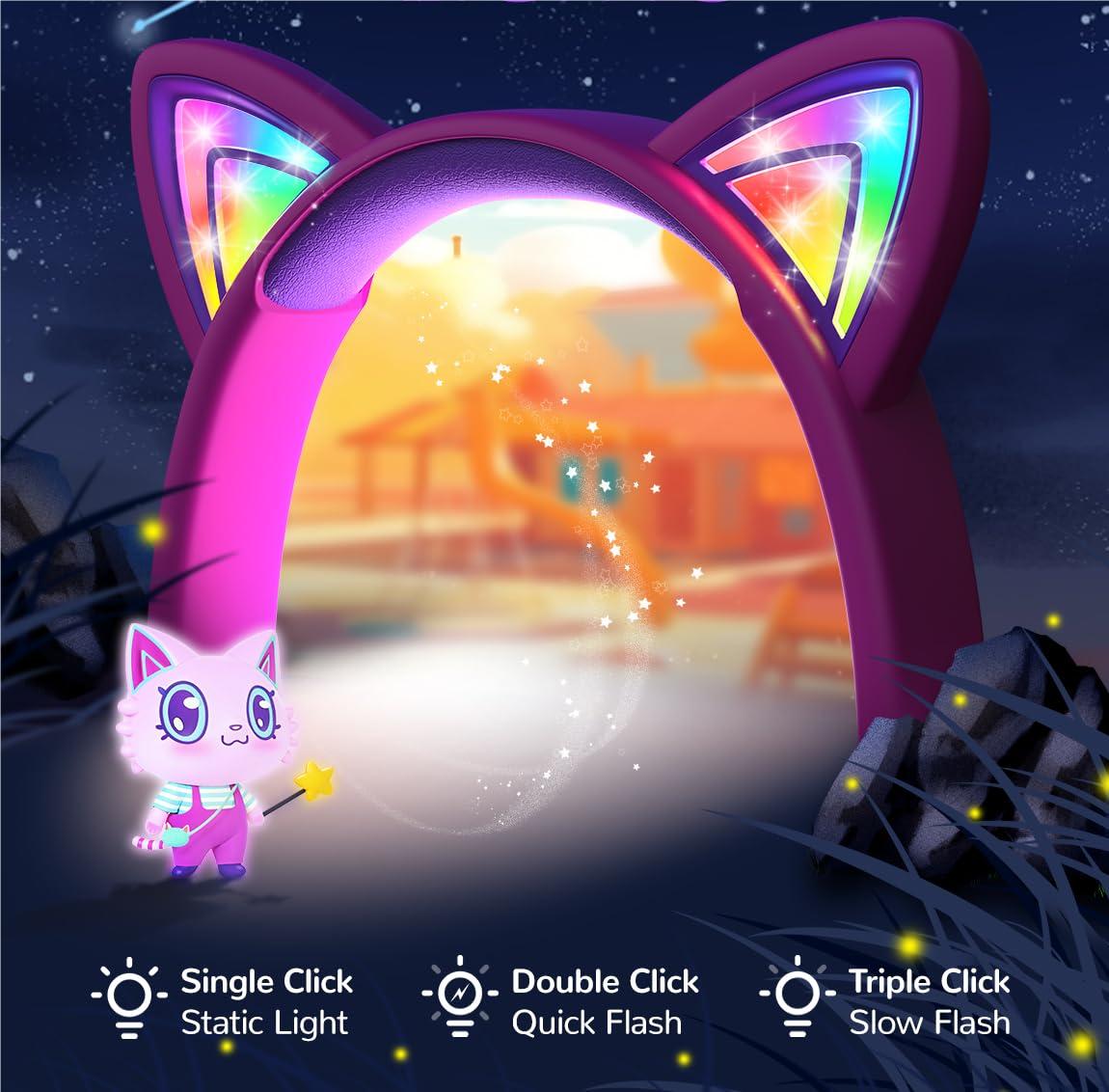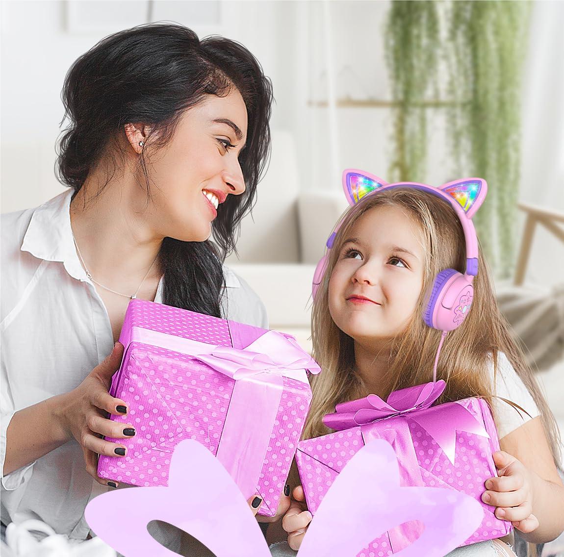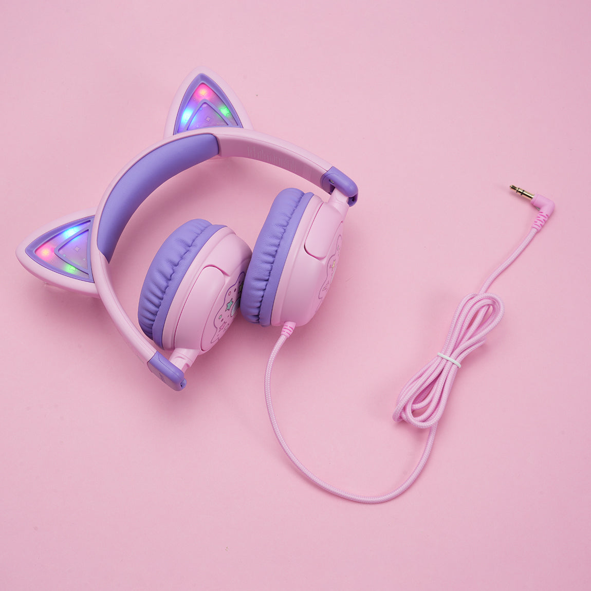 The kids cat ear headphones comes with cat-ear shapes that give off dazzling RGB lights. Better yet, to make these headphones more lovely and cheerful, we' ve printed some cute and exquisite patterns on the ear shells and headband! Now, you' ve got the perfect gift idea for any festive occasions.